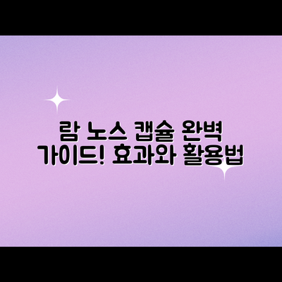 이 가이드는 람 노스 캡슐의 효과적인 복용법과 주의사항을 안내하여 올바른 사용을 도울 것입니다.